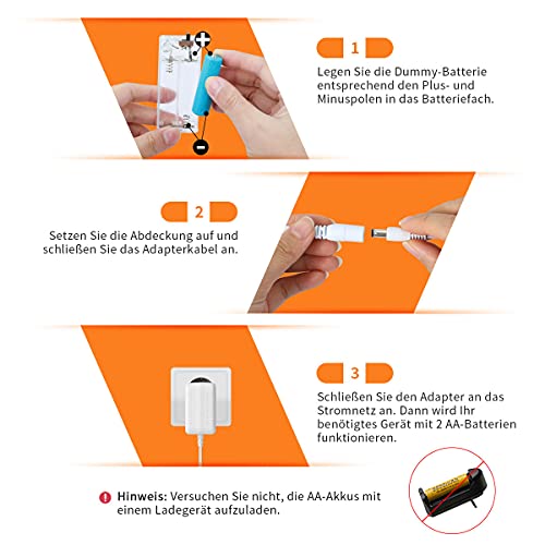 Vervanging voor conventionele batterijen: handige vervanging voor 2 stuks AA-batterijen. Geen regelmatige vervanging van de batterij voor je apparaten die met 2 stuks AA-batterijen worden gebruikt