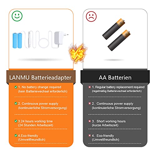 Betrouwbare kwaliteit: gemaakt van hoogwaardig materiaal. In tegenstelling tot conventionele batterijen/accu’s, die na 2-3 dagen steeds donkerder worden, kan deze batterijadapter de constante helderheid garanderen (Opmerking: alleen geschikt voor gebruik binnenshuis)