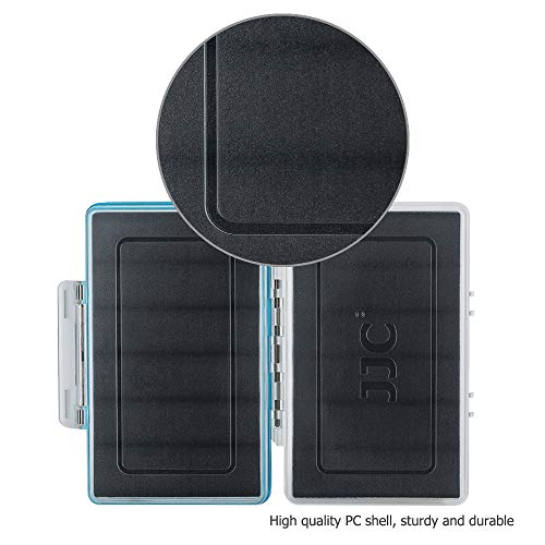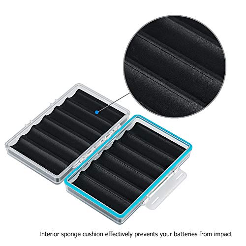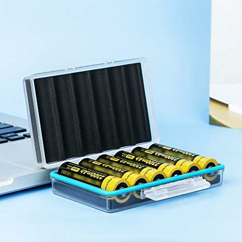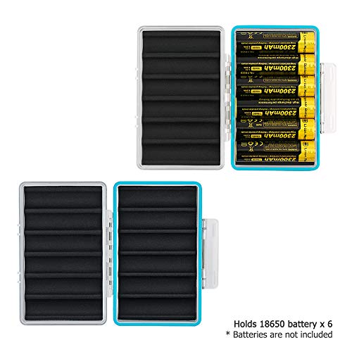 JJC Battery Case is gemaakt van hoogwaardig pc-materiaal, stevig en duurzaam, wat een goede partner is voor u wanneer u gaat kamperen. Het kan 6 Stuks 18650 batterijen bevatten en stelt u in staat om voldoende reservebatterijen op te slaan om te vervangen wanneer uw zaklamp leeg is van de stroom. De batterijbehuizing kan uw batterijen niet alleen een betere bescherming bieden, waardoor ze uit de buurt van kortsluiting zijn, maar houdt ook uw batterijen netjes om verlies te voorkomen. Bovendien kan de batterijhouder uw batterijen beschermen tegen stof, vocht, schokken en waterspatten. Het binnenste sponskussen kan ook effectief voorkomen dat uw batterijen beschadigen en beschermen ze weg van impact. Het duurzame en ergonomische sluitsysteem kan gemakkelijk openen en sluiten realiseren. Bovendien zorgt het doorschijnende lichaam met felblauwe afdichtingsring ervoor dat de case er modieus en mooi uitziet.