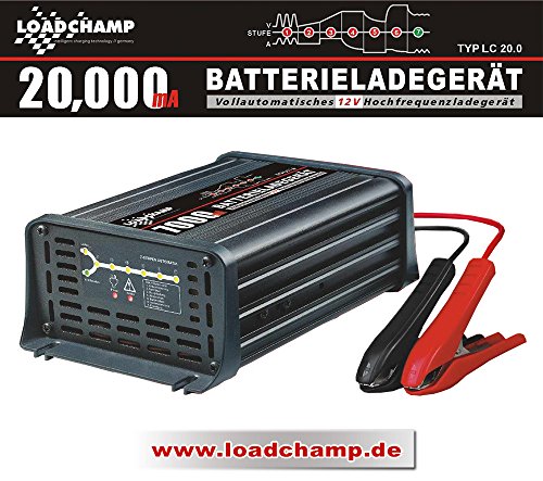 Loadchamp LC20.0 acculader, voor alle 12 V accu’s van 40 Ah tot 400 Ah. **Volautomatisch en microprocessorgestuurd** De volautomatische 20 ampère 12 V hoogfrequente oplader beschikt over een uitstekende batterijlading. Geschikt voor alle soorten batterijen (nat, loodzuur, calcium, AGM en gelbatterijen) – slechts één oplader voor alle soorten batterijen. Het is de ideale high-end oplader voor alle gebruikers en bovendien kan hij in vergelijking met conventionele laders ook calcium batterijen opladen. ** De 7 traps automatische IUoU opladen beschermt je batterij tegen overbelasting. Zo kun je de oplader voor onbepaalde tijd met de batterij laten verbonden. De Loadchamp 7-traps opladen is een zeer rijk en zorgvuldig laadproces, dat je batterij een langere houdbaarheid en betere prestaties geeft in vergelijking met het gebruik van traditionele opladers. ** Via de volautomatische bediening kunnen ook gebruikte of sulfate batterijen via de reparatiefunctie (Recond) weer worden opgeladen. ** Productinformatie ** – Laadt loodzuur batterijen (open MF, gel, calcium en AGM) van 40 Ah tot 400 Ah** – Volautomatisch en nauwkeurig laadproces ** – 7 standen (ontulfatie, soft start, hoofdacatie, absorptie, batterijanalyse, reparatie, druppellading) ** – IUou opladen (IUoU laadindicatielijn) )** – Reparatiefunctie (Recond) voor gebruikte of gesulfeerde batterijen ** – Nauwkeurige en microprocessorgestuurde laadspanningsaanpassing** – Kan de batterijen tot 100% van de oorspronkelijke capaciteit opladen** – Optimale lading voor alle technologieën ** – Diagnose van de batterijstatus ** – Automatische oplading na een stroomuitval** – Hoogwaardige en robuuste aluminium behuizing ** – Onderhoudslading tot 600 Ah. Oververhittingsbeveiliging ** – bescherming tegen omgekeerde polariteit ** – vonkvrij ** – 5,0 mm montagegat, montageflens incl. schroeven voor wandbevestiging