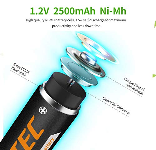 Shentec AA AAA acculader incl. 8 x 2500 mAh AA acculader voor AA, AAA, Ni-MH accu, universele acculader 8-voudige multi…
