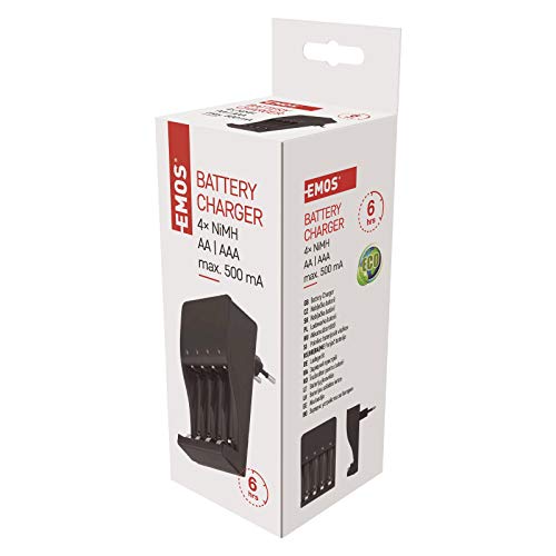 Specification: EMOS Acculader, universele NiMH, NiCd acculader voor 4 x AAA, AA batterijen, 4 laadkanalen, met timer en led-display