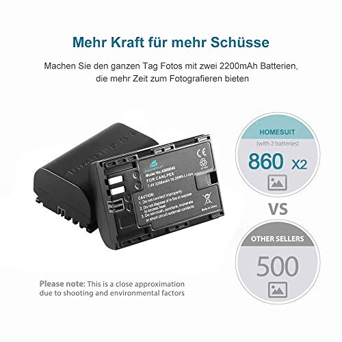 Homesuit LP-E6 LP-E6N Accu en USB Dual Charger voor Canon 5D Mark II III IV, 5Ds, 6D, 70D, 80D en meer (2-pack 2200mAh…