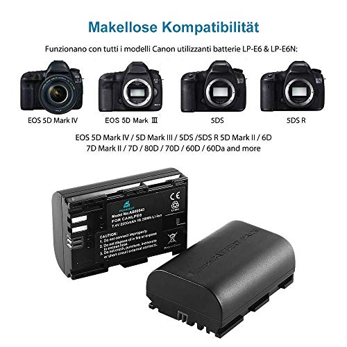 Specification: Homesuit LP-E6 LP-E6N Accu en USB Dual Charger voor Canon 5D Mark II III IV, 5Ds, 6D, 70D, 80D en meer (2-pack 2200mAh…