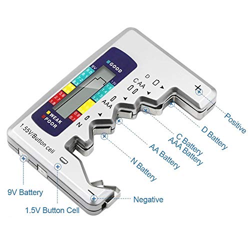 Geschikt voor: kan worden gebruikt voor het testen van D-, C-, AA-, AAA-, N-, 1,5 V toetsaccu’s en 9 V batterijen.