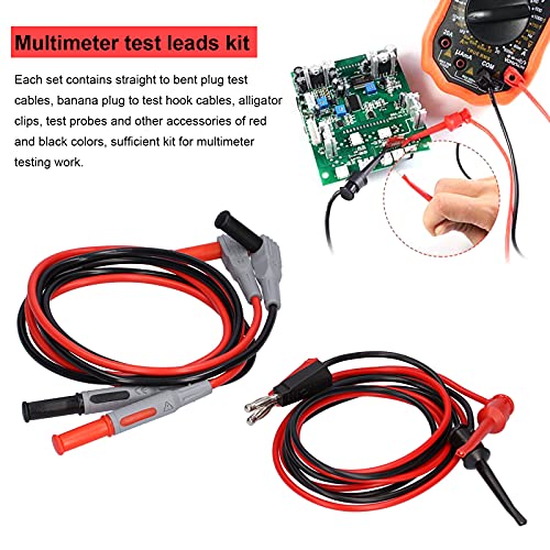Multimeter Test Leads Kit: Each set contains banana plugs, alligator clips, test hooks, test probes and other accessories of red and black colors, 20 Pcs kit for multimeter testing work, which can meet different test needs.
