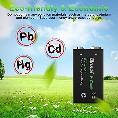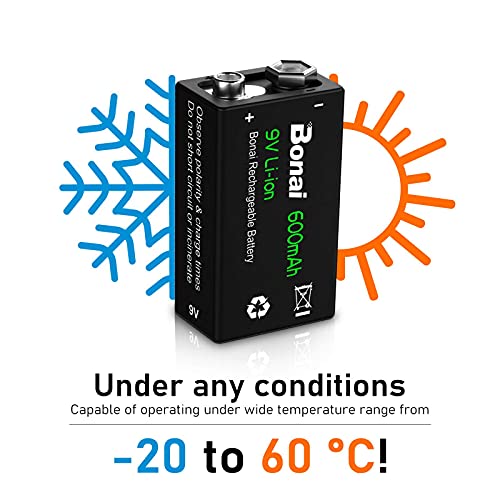 🔋Bonai 9V oplaadbare batterijen van hoge kwaliteit, 1200 cycli, zelfs als het elke dag wordt opgeladen, kan het meer dan 3 jaar worden gebruikt. Het wordt ten aanbevolen om elke 2 maanden volledig te worden opgeladen.