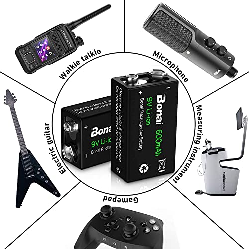 BONAI 9V Batterij 600mAh Li-ion 9v Oplaadbare Batterij Lithium 9 Volt Batterijen 6F22 met Lage Zelfontlading en Lange…