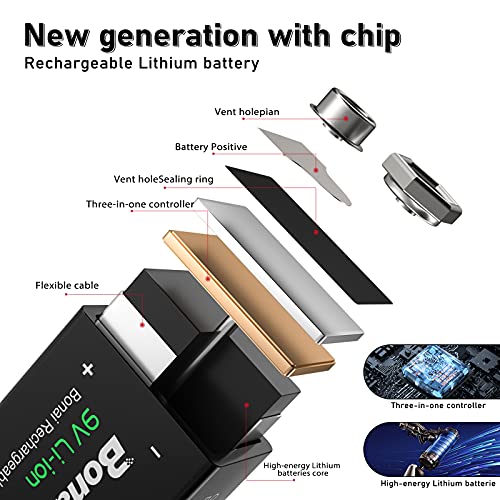 Specification: BONAI 9V Batterij 600mAh Li-ion 9v Oplaadbare Batterij Lithium 9 Volt Batterijen 6F22 met Lage Zelfontlading en Lange…