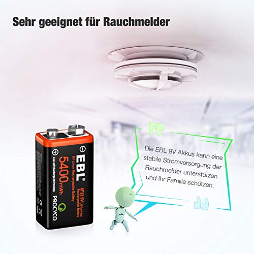 【Hoge capaciteit】EBL krachtige 9 V AA-batterij met hoge capaciteit 5400 mWh, ideaal voor apparaten met een hoog stroomverbruik, zoals speelgoed; afstandsbediening; elektrische gitaar; draadloze microfoon; metaaldetector; rookmelder; multimeter; walkietalkie en nog veel meer.