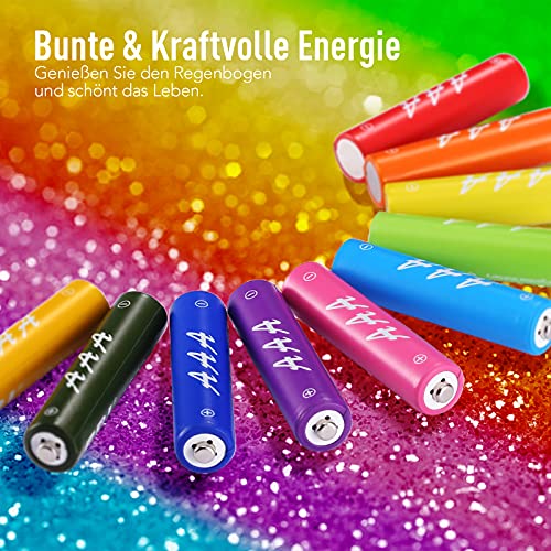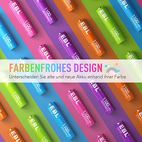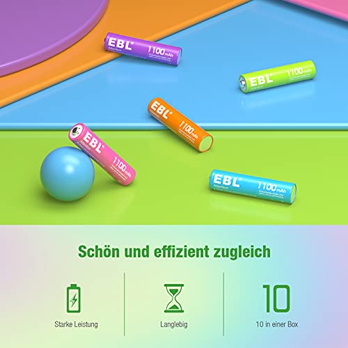 EBL regenboog AAA-batterij: 10 stuks 1,2 V AAA batterij met 5 heldere kleuren die je leven verfraaien en het je mogelijk maken om gemakkelijk te zien welke batterijen gebruikt en welke ongebruikt zijn.