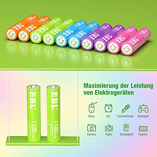 Specification: EBL AAA batterij 1100 mAh, 1,2 V NiMH, oplaadbare AAA-batterijdozen, micro AAA batterijen, nieuwe verkoopverpakking, 10…