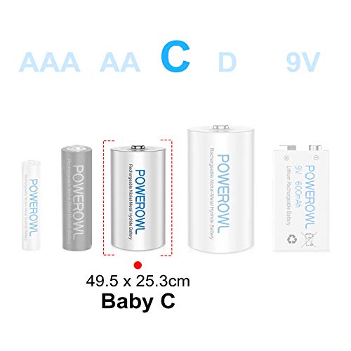 Geschikt voor alle soorten temperatuur en apparatuur: Alle soorten kinderspeelgoed, elektronische apparatuur en huishoudelijke apparaten die compatibel zijn met C-batterijen kunnen normaal worden gebruikt, bijvoorbeeld: camera, microfoon, speelgoed, wekker, radio, afstandsbedieningshendel en andere apparatuur. Bovendien zijn POWEROWL oplaadbare batterijen ook geschikt voor omgevingen met lage temperaturen, zelfs bij temperaturen onder de 20 graden
