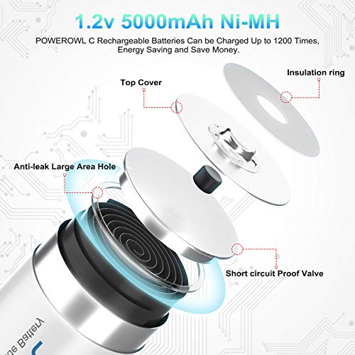 Specification: POWEROWL C oplaadbare batterij 5000 mAh Hoge capaciteit Spanningsstabiliteit Constante stroomoutput (4 stuks, lage…