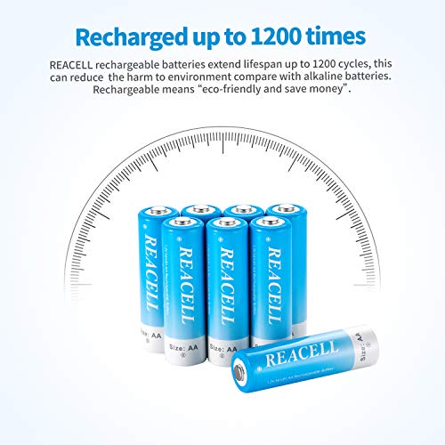 Specification: REACELL AA Accu Oplaadbare Batterijen 2800mAh 1,2V Ni-MH 1200 Cycli Lage Zelfontlading met Opbergdoosje (8 Stuks)