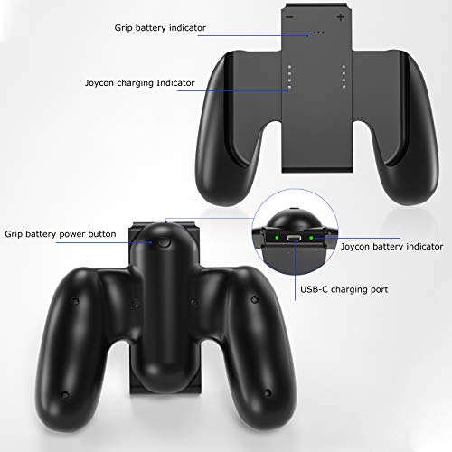 Switch handvat oplaadstation, Likorlove Switch handvat oplaadhouder, oplaadbare handgreep, oplaadbare 2000 mAh lithium-ion batterij, blauwe status LED grip voor Switch handvat gamepad controller