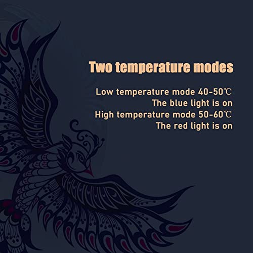 Twee temperatuurmodi, lage temperatuurmodus: 40-50 ° C, het blauwe lampje is aan, hoge temperatuurmodus: 50-60 ° C, het rode lampje is aan.