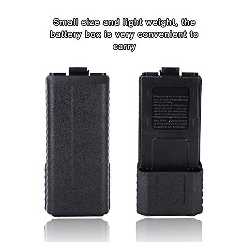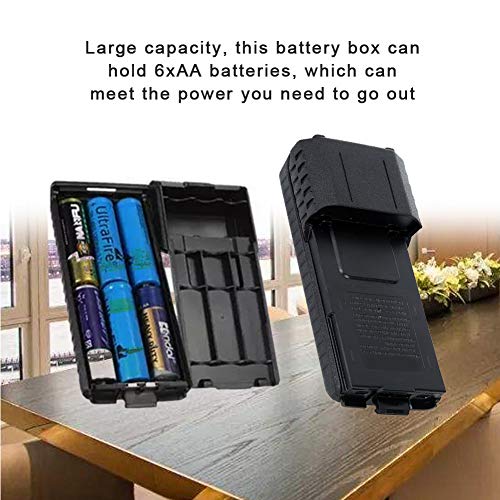 Perfect passend, geschikt voor Baofeng UV-5R walkie-talkie batterijhouder. Grote capaciteit, deze accubak kan 6xAA-batterijen bevatten, die kunnen voldoen aan de stroom die u nodig hebt om uit te gaan. Gemaakt van hoogwaardig abs-materiaal, dit product is zeer duurzaam. Klein formaat en licht van gewicht, de accubak is erg handig om mee te nemen. Eenvoudig uiterlijk, klassieke zwarte schaal, goede glans, praktisch en comfortabel.